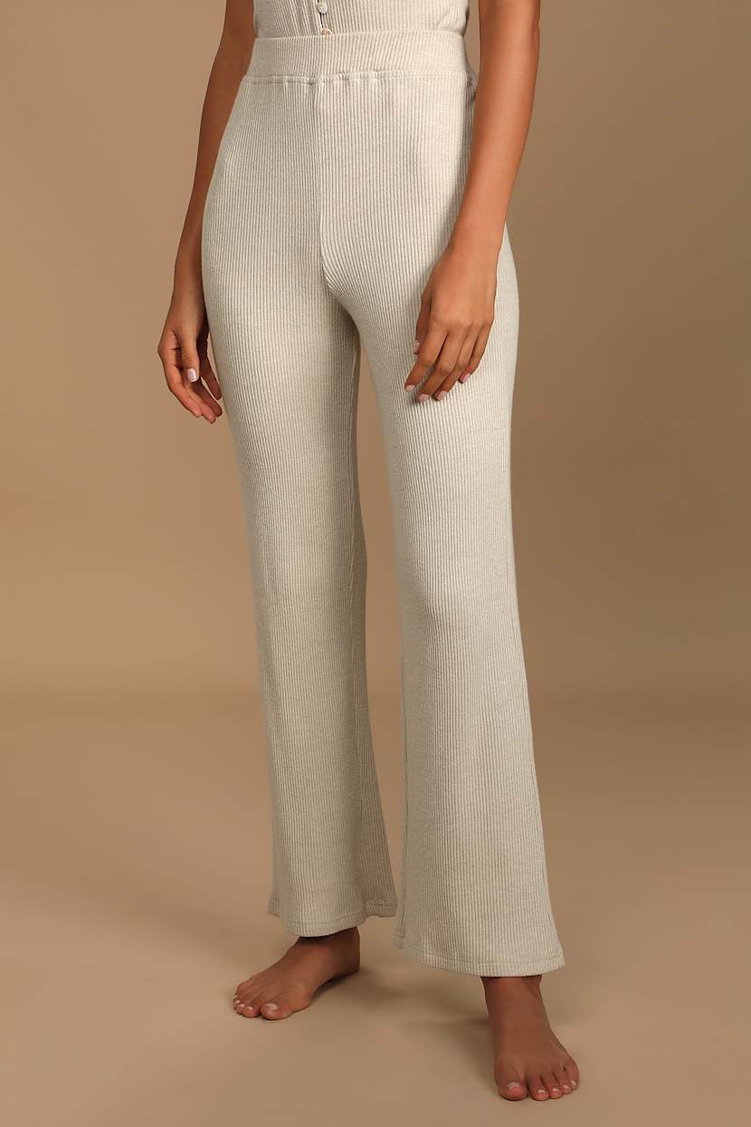 Beige Lounge Pants Knit Pants Wide Leg Lounge Pants Lulus